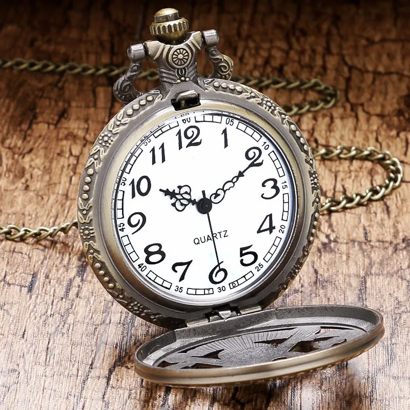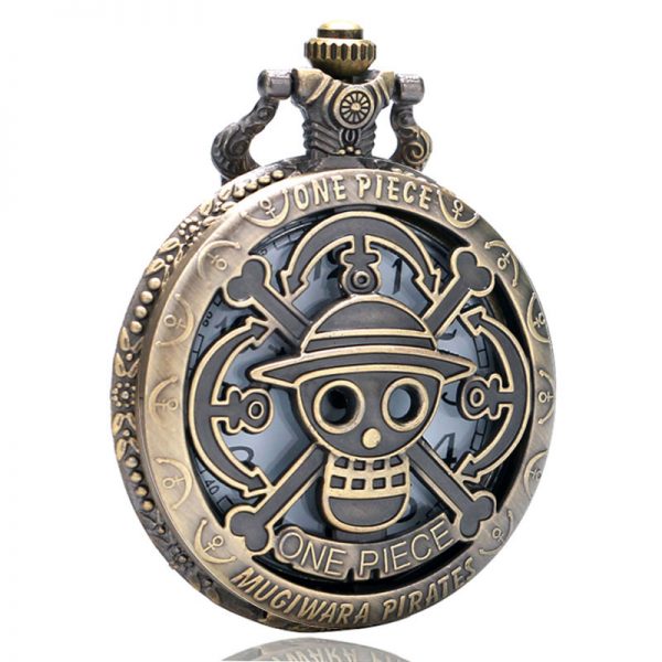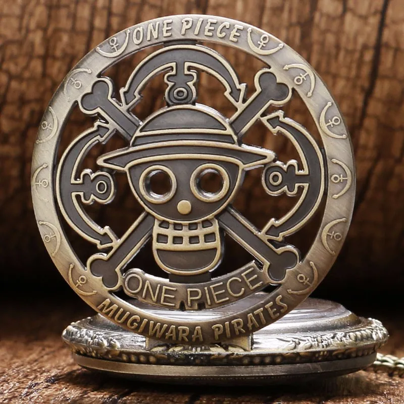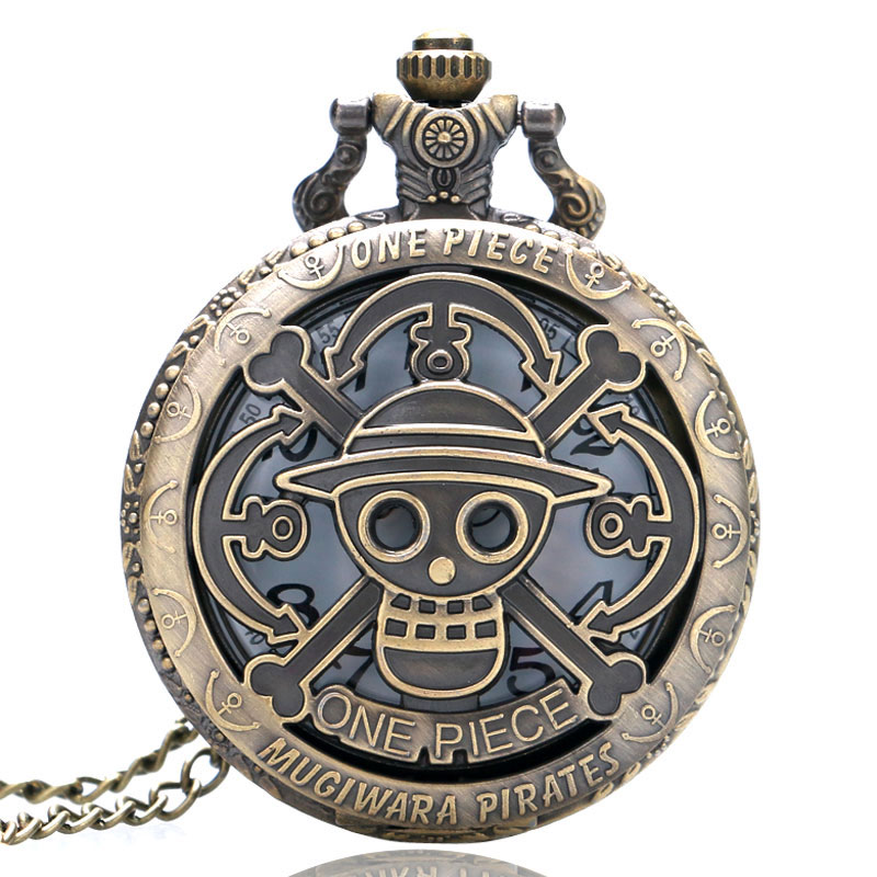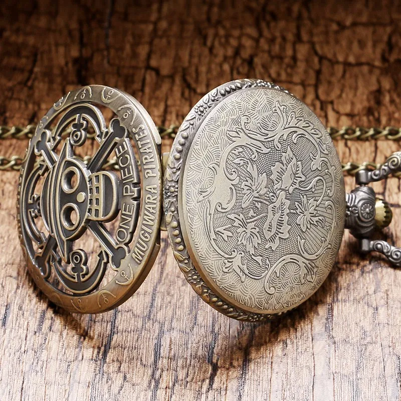 Bronze Copper Vintage One Piece Theme Skull Pattern Hollow Quartz Pocket Watch for Men Women Kids Gift Necklace Free Shipping