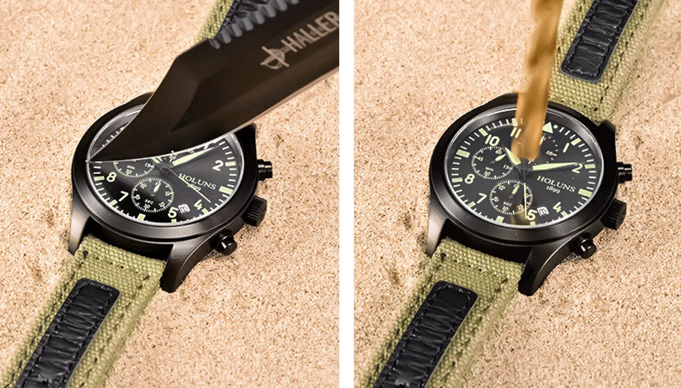 The watch dial is made of hardlex , it will remain new after using for years