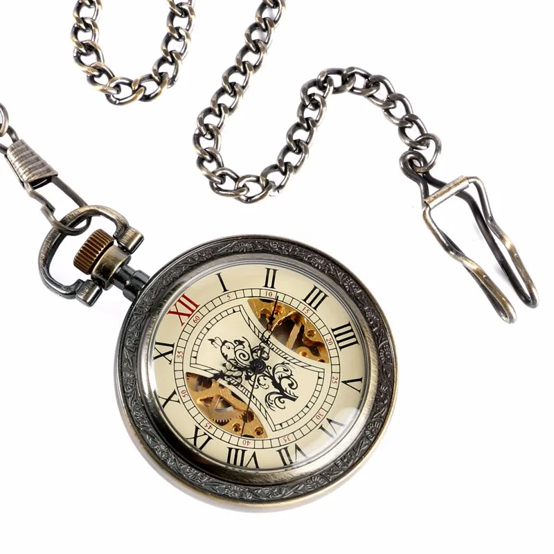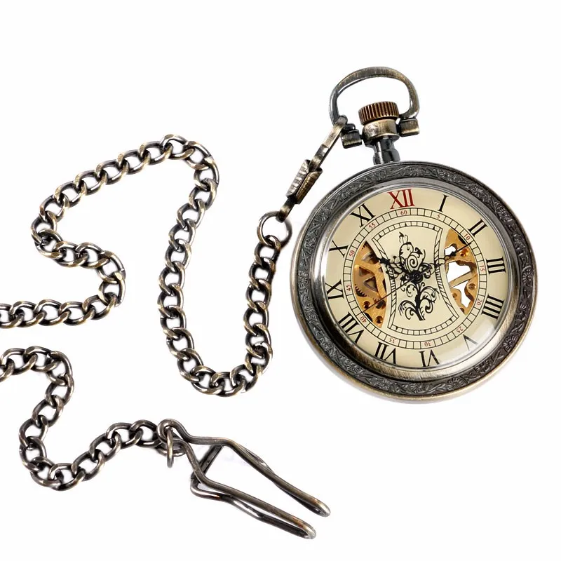 Product Features: Transparent Skeleton Open Face Design Movement: Hand Winding Mechanical Diameter: About 5.0 cm Thickness: About 1.5 cm Total Length of Chain: About 30cm Package Content: 1 x Pocket Watch 1 x Chain