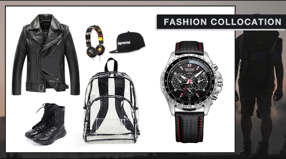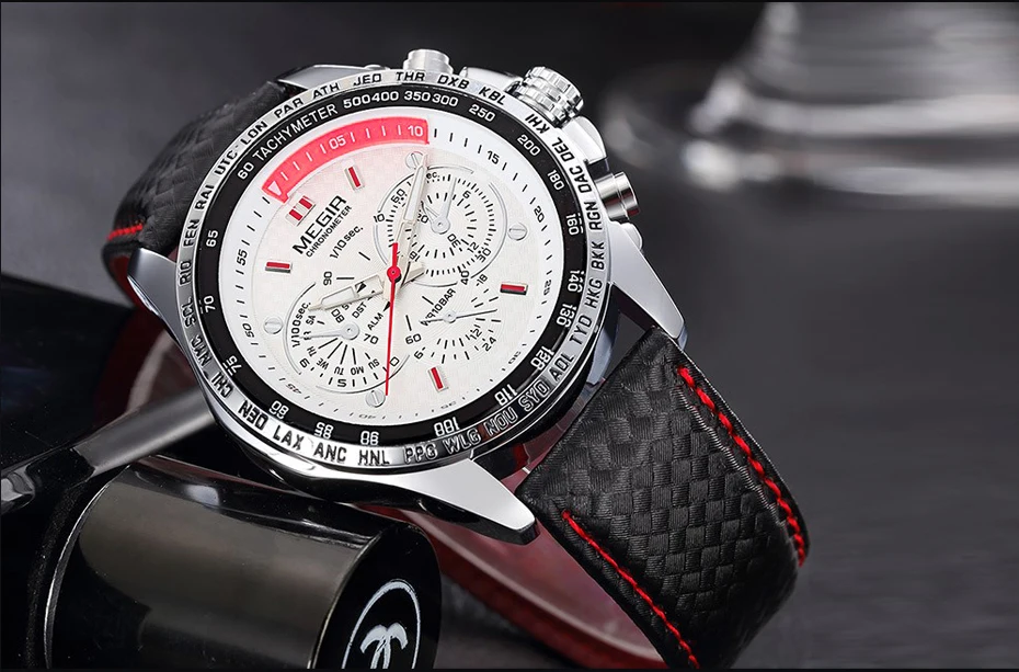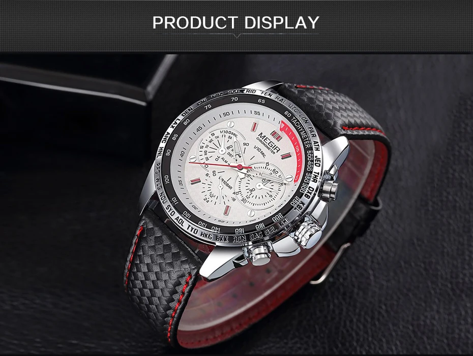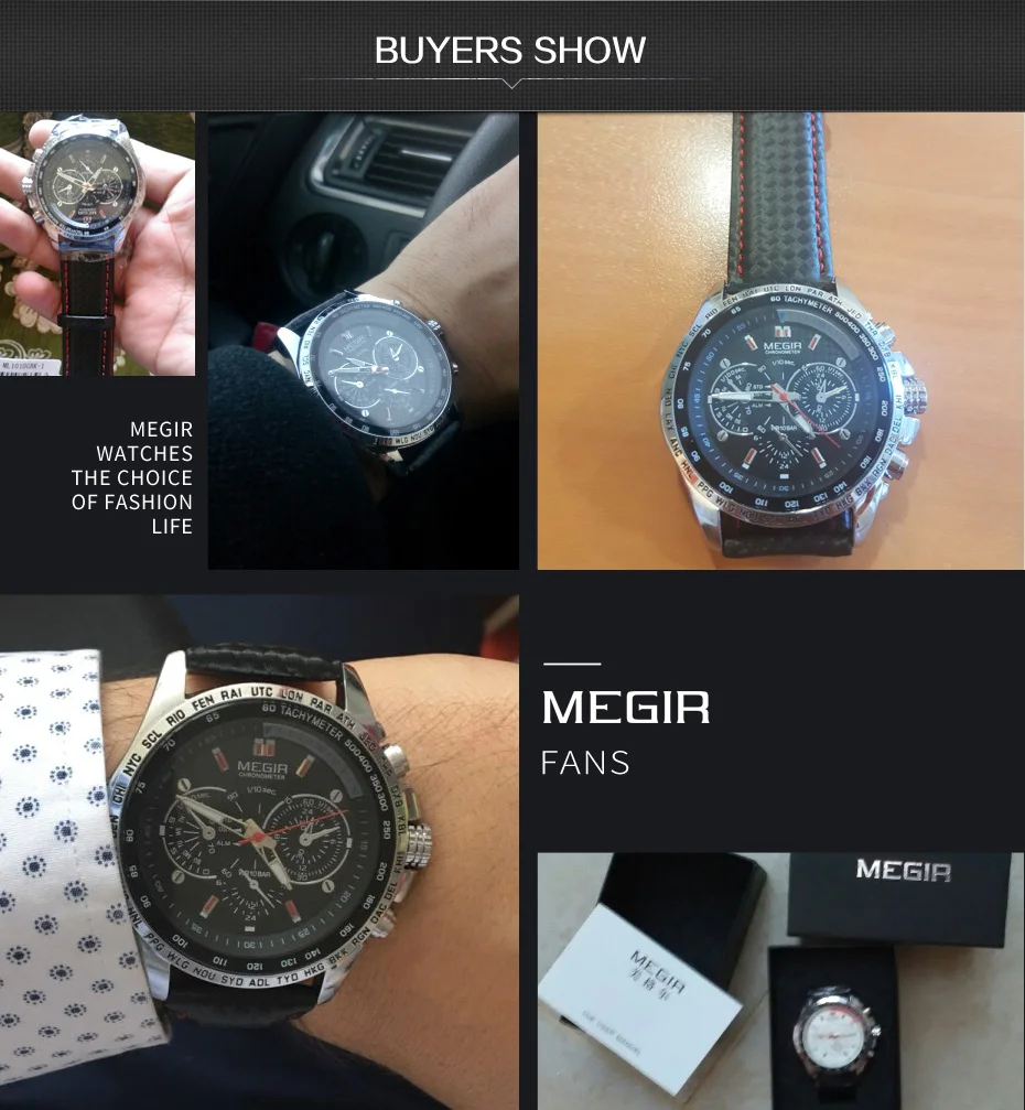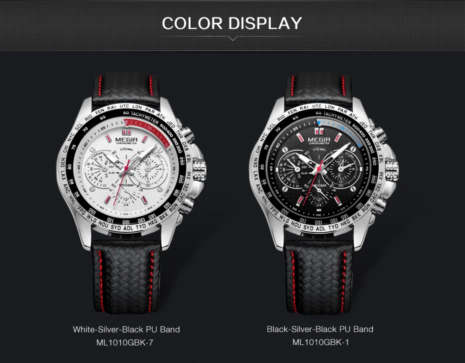 MEGIR Sport Mens Watches Top Brand Luxury Quartz Men Watch Fashion Casual Black PU Starp Clock Men Big Dial Erkek Saat 1010