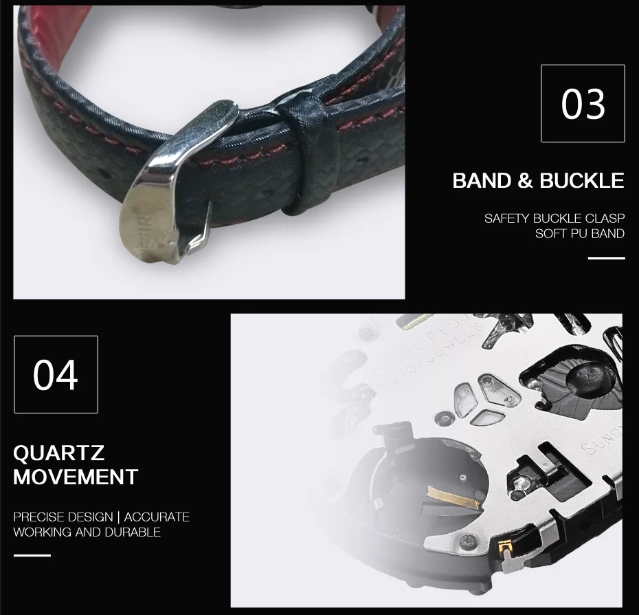 The small dials and buttons on this watch are just decoration, not working. And the strap is PU material, not genius leather.